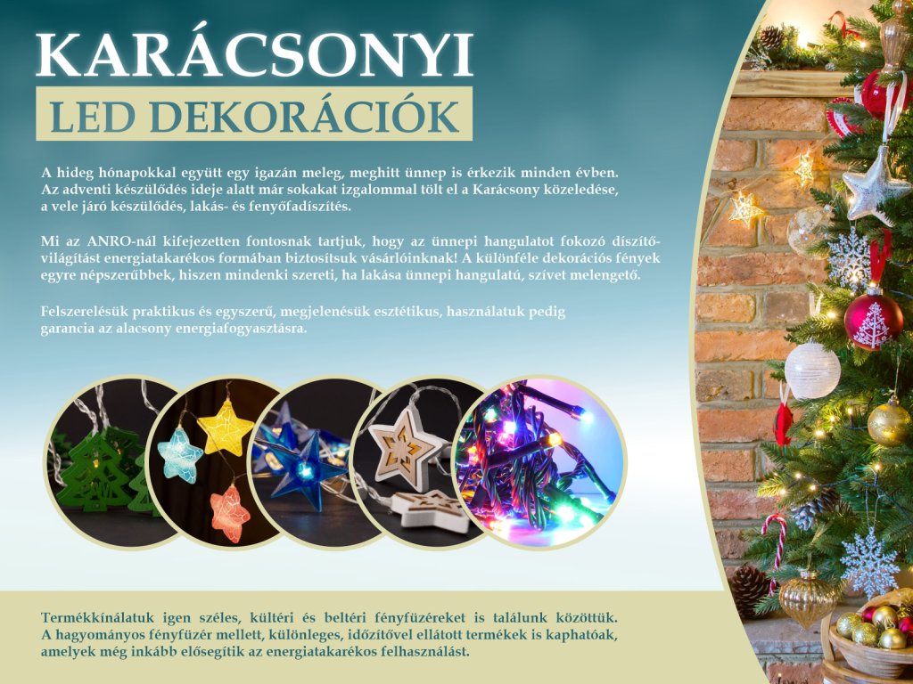 Felhasználható karácsonyi és ünnepi díszkivilágításhoz, de bármilyen más rendezvény dekorációjaként is alkalmazható, például esküvő, születésnap, babazsúr, lánybúcsú, stb.
