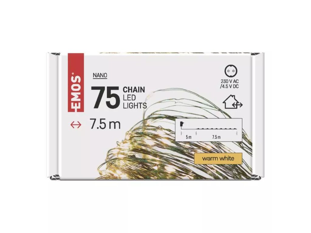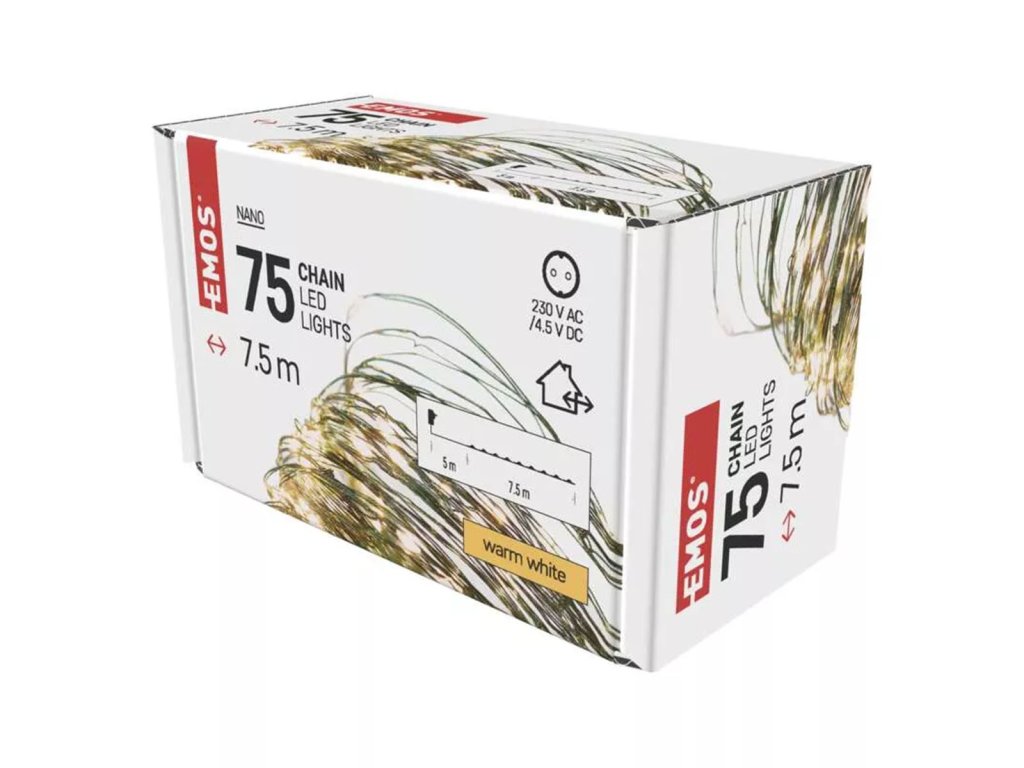 Kültéri nano fényfüzér (75 LED/7,5 méter) időzítővel - meleg fehér